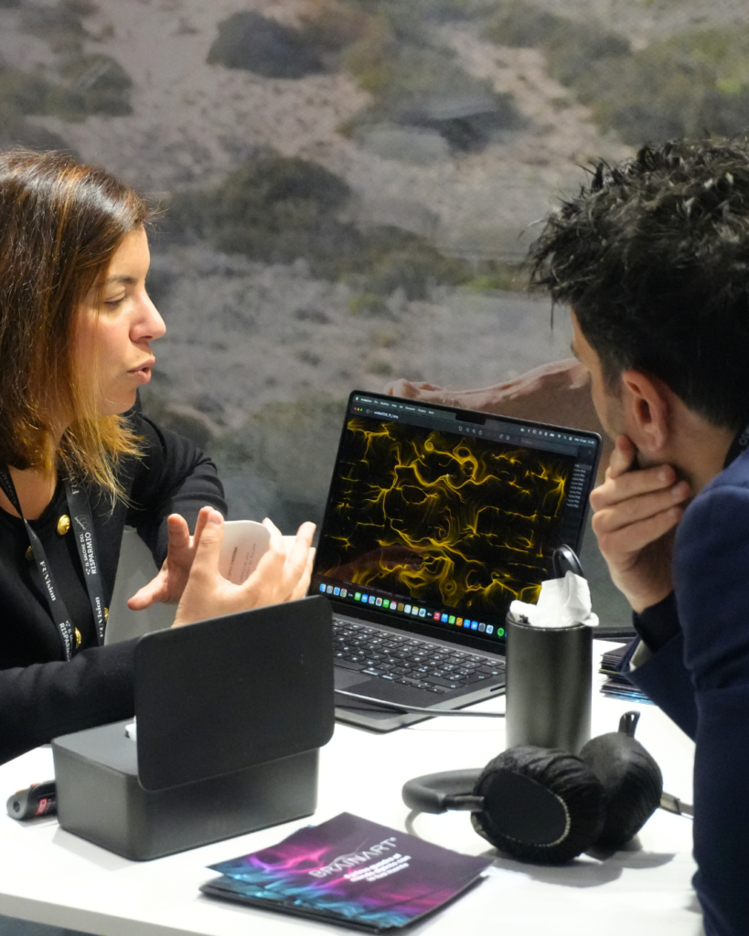 Proprio come nella consulenza proposta da Banca Widiba, anche l’esperienza BrainArt parte dall’ascolto. I partecipanti, guidati dal team di BrainArt, indossavano le cuffie e il dispositivo neurale, sceglievano un brano musicale e si immergevano nella musica. Nel frattempo, la versione real-time di BrainArt rilevava e mostrava sullo schermo le loro reazioni cerebrali: emozioni, pensieri, ricordi… tutto prendeva forma visivamente, per poi confluire nella creazione finale di un’opera d’arte unica e irripetibile.