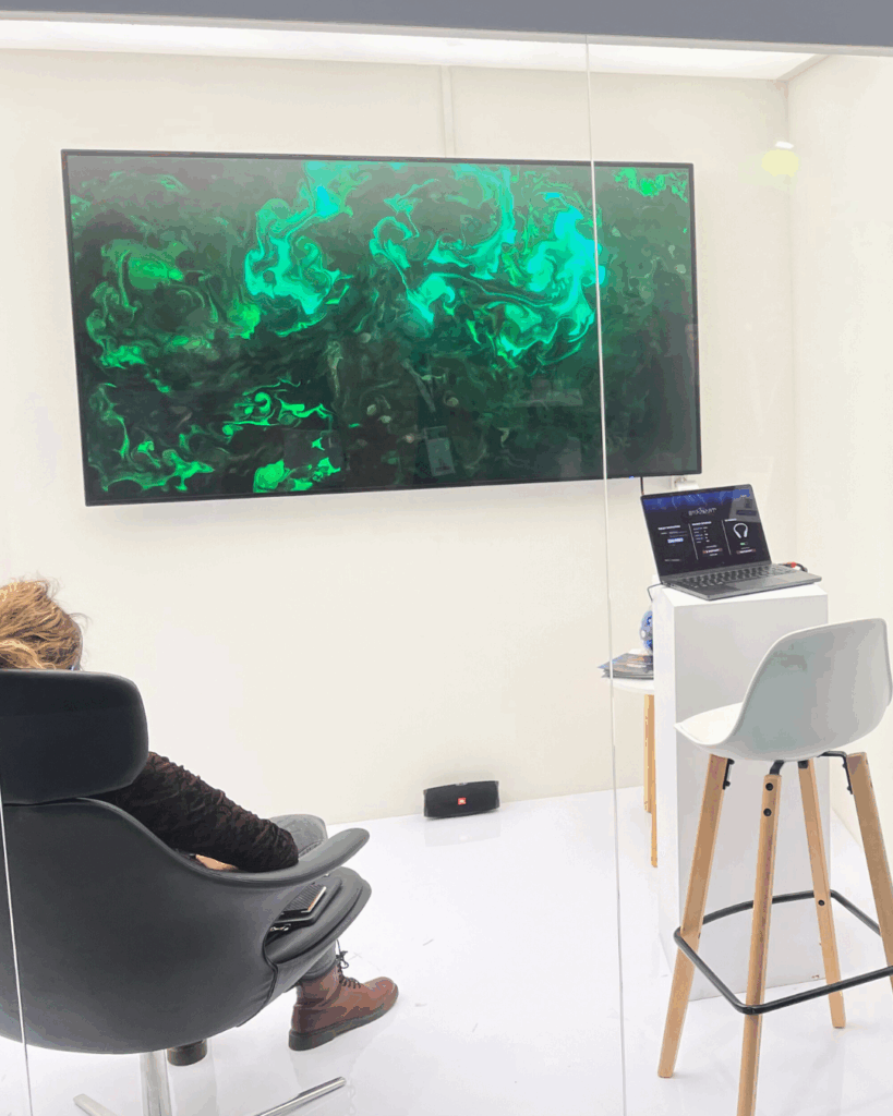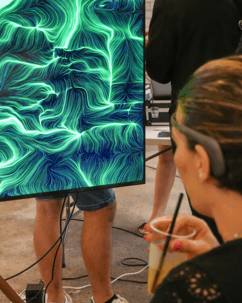 BrainArt si posiziona in questo contesto: un brand di Vibre – azienda italiana specializzata in neurotecnologie – che unisce neuroscienze e tecnologia. Attraverso un sistema avanzato di rilevazione e interpretazione delle onde cerebrali, BrainArt trasforma in tempo reale l’attività mentale stimolata da suoni, immagini o profumi in opere visive uniche e irripetibili.